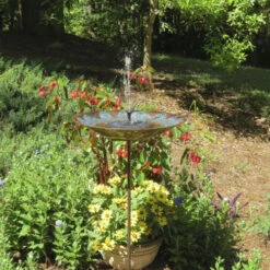 Moving water attracts more birds, graceful birdbath fountain/dripper has a soothing sound that’s both inviting and relaxing. Electric fountain recirculates water, complete with pump and ready to install in your bird bath.